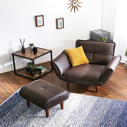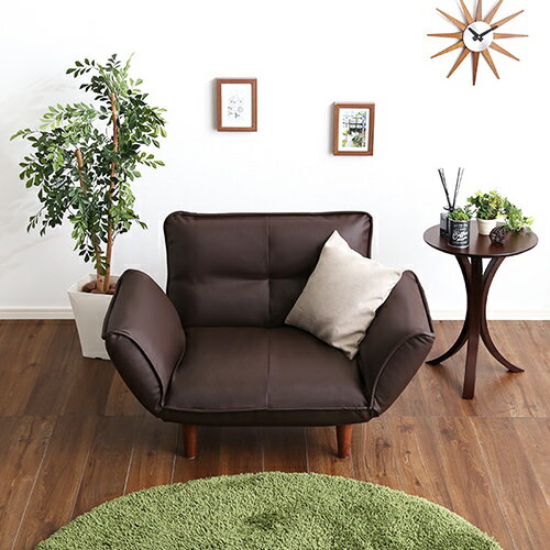 このソファは幅88cmとコンパクト設計になっていて、座る時には背もたれと肘掛がリクライニングするのでゆったりと寛ぐことができるんですよ!しかも5段階のリクライニングでお好みの角度調整が可能になっています。