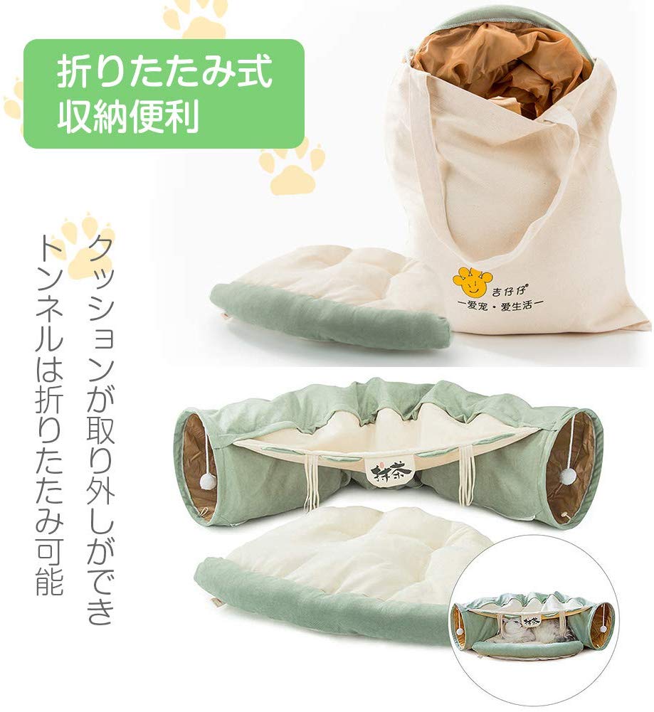 折りたたみ式、収納便利: トンネルだけでなく、ベッドとトンネル二つの部分で作られて、自由に取り外し可能です。