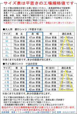 綿100% 和のイベント屋謹製 オリジナル鯉口シャツ サイズ表は画像にてご確認ください。
